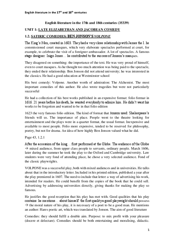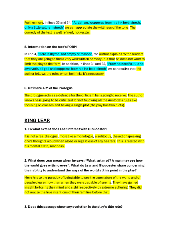 Con estos apuntes (más los de otros compis que subieron a Wuolah) saqué un 7.4 en el examen final. CONSEJO: coged prestado de la biblioteca las traducciones hechas por Puri, con ellas os aseguraréis de que no os ponga pegas con la traducción. Para Shakespeare ('King Lear') usad traducciones del Instituto Shakespeare.