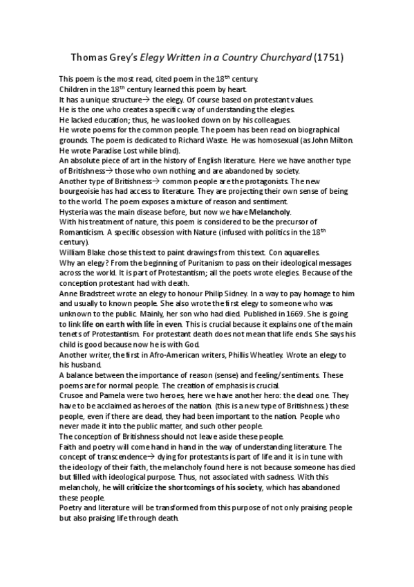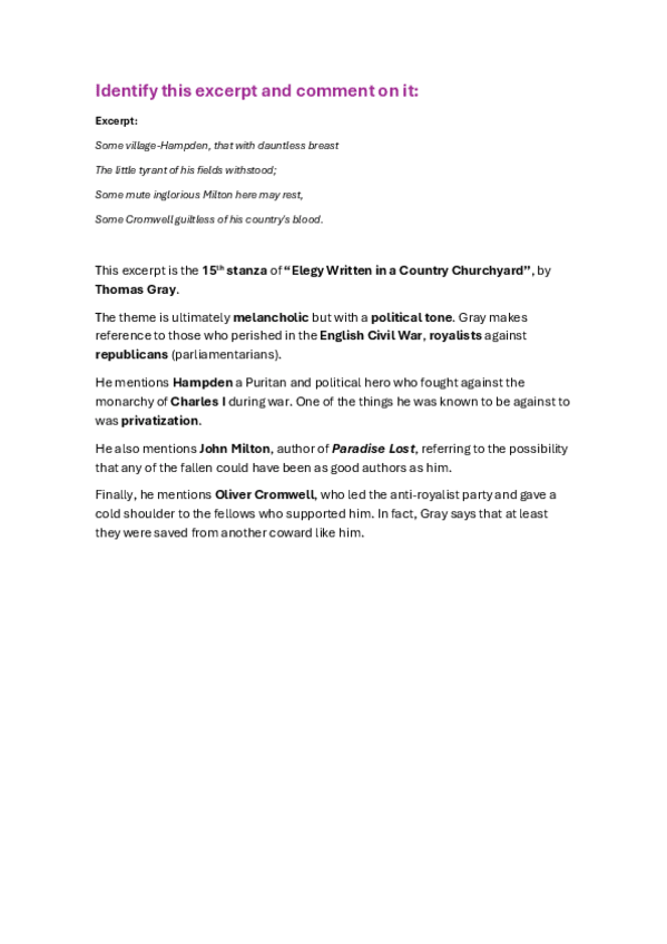 Comentario de un extracto de "Elegy Written in a Country Churchard". Revisado por Vicent. Dicho por él, en el examen el espacio es limitado 'aprieta la letra'.