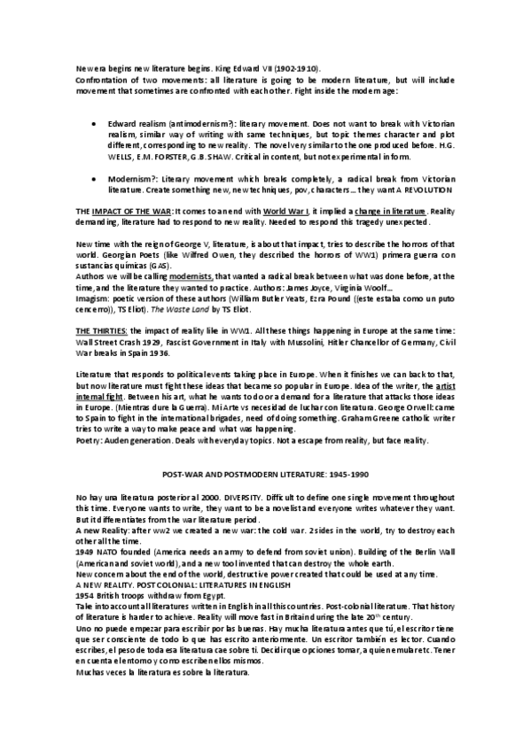 He publicado nuevos apuntes de 4º Literatura Inglesa del Siglo XX: Tema 1. History.pdf