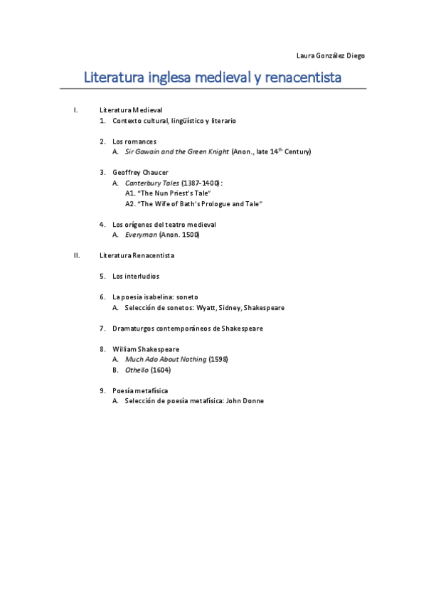 He publicado nuevos apuntes de 4º Literatura Inglesa del Siglo XX: Literatura inglesa medieval y renacentista.pdf
