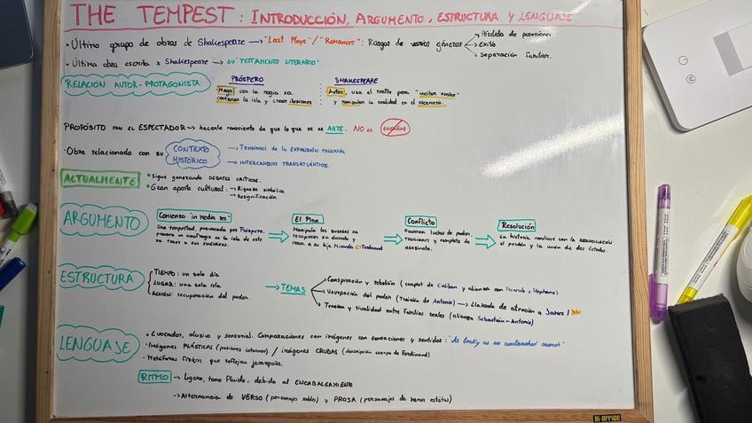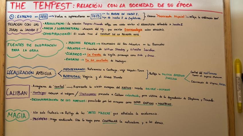 Esquemas para facilitar la preparación del examen y las preguntas más frecuentes sobre The Tempest, capítulo 8 del manual de la asignatura. También muy útiles para la PEC del curso 2025-2026.