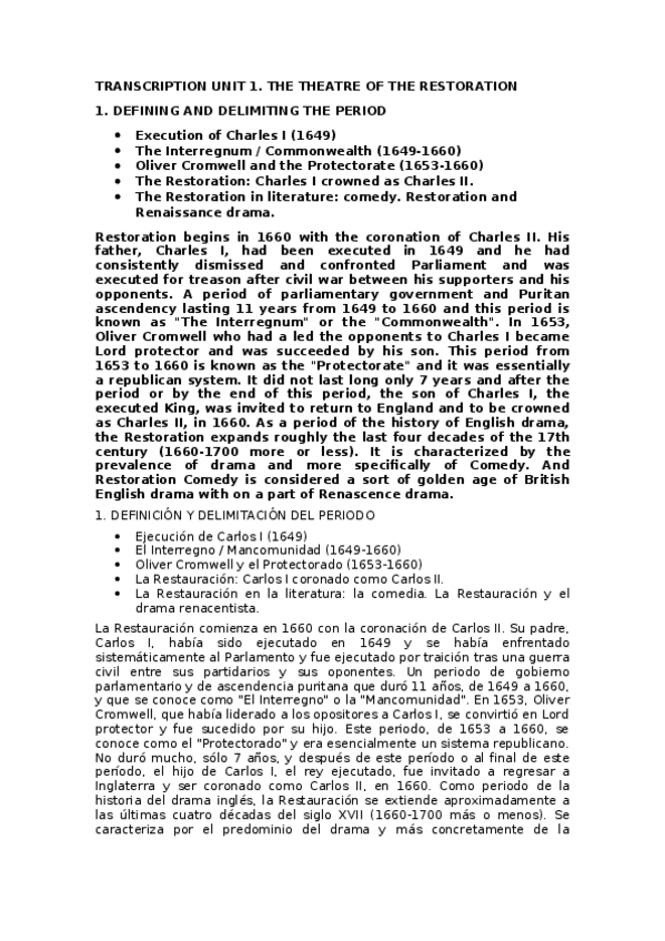 He publicado nuevos apuntes de 2º Literatura Inglesa Ii.1: Restauración y Siglo Xviii: Transcription-UNIT-1.-The-theatre-of-the-Restoration.docx