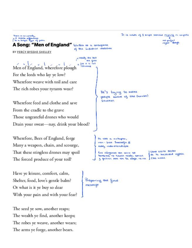 Poemas de todo el booklet de Literatura Inglesa III comentados, línea por línea con respuestas a las preguntas cortas.