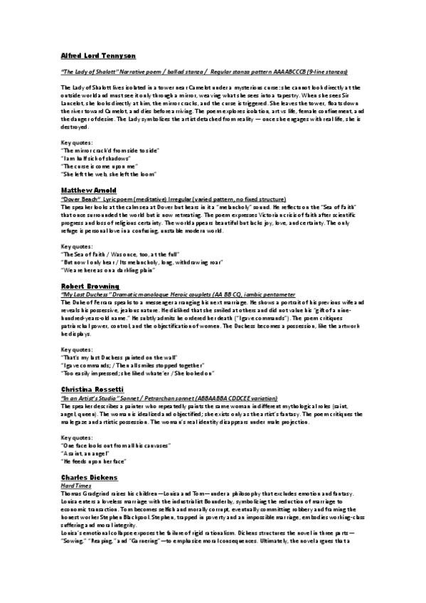 VICTORIAN PERIOD, ALL WORKS ANALYSED AND AUTHORS