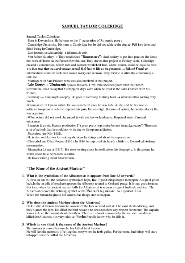 He publicado nuevos apuntes de 3º Literatura Inglesa Iii: COLERIDGE POEMS