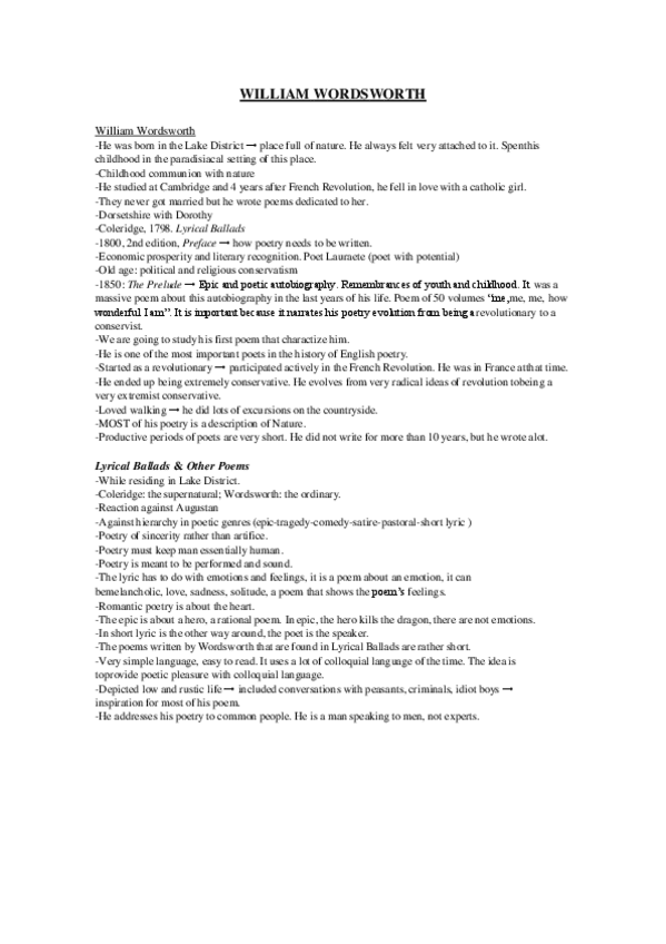 He publicado nuevos apuntes de 3º Literatura Inglesa Iii: William Wordsworth
