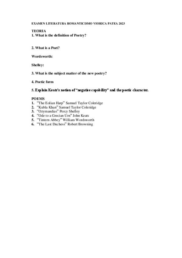 He publicado nuevos apuntes de 4º Literatura Inglesa: Romanticismo y Época Victoriana: Examen-Romanticismo-Teoria-2021.pdf
