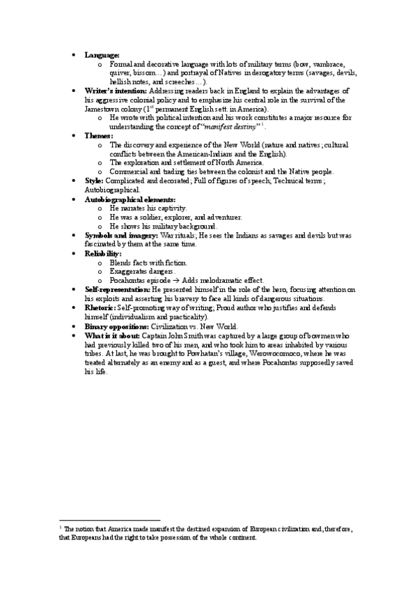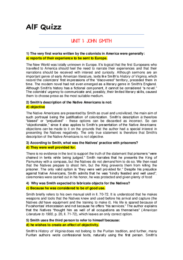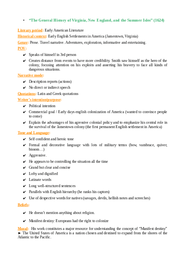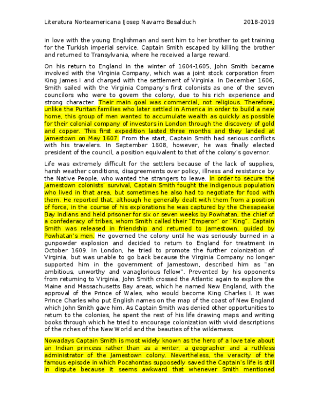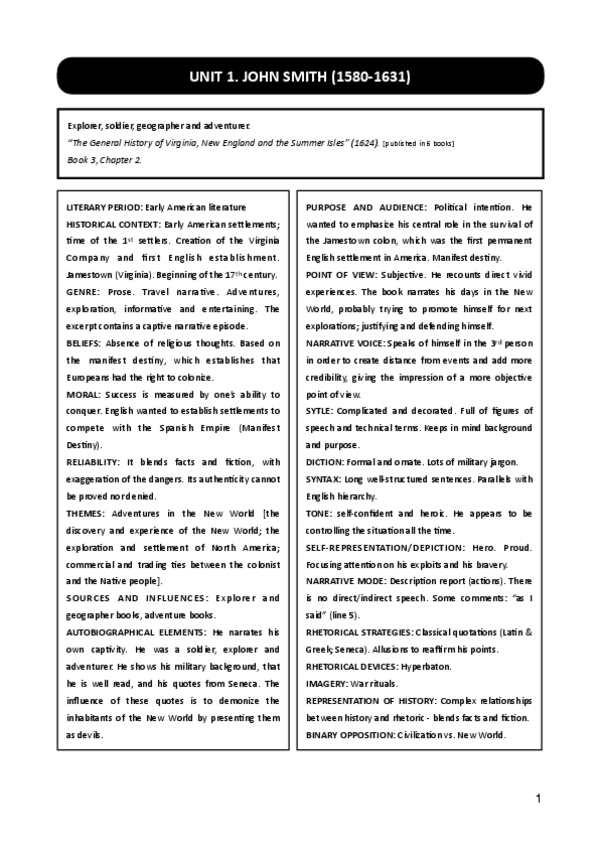 Captain John Smith + Historical & Literary context (Sirve para todos los "Early American Authors") + Exploratory Questions.