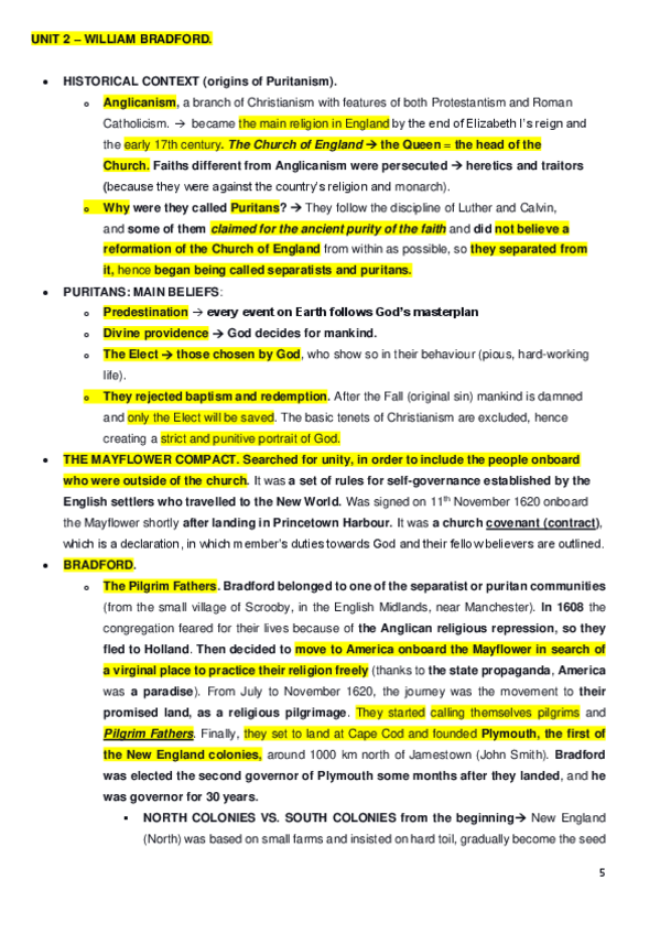 William Bradford + "BUT THAT I BE NOT TEDIOUS" (Women's representation in Bradford's narrative) + Comparative table (Smith VS Bradford) - Historical & Literary context in Unit 1.