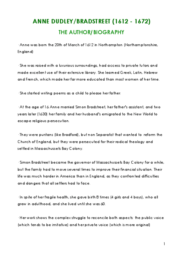 Anne Bradstreet + The process of [Scansion] + How to Determine a [Rhyme Scheme] + Bradstreet' selected poems (4).
