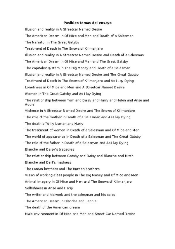 He publicado nuevos apuntes de 4º Literatura Norteamericana: siglo XX: Posibles temas del ensayo.docx