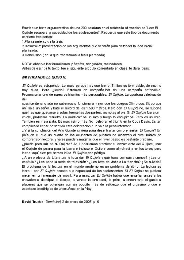 He publicado nuevos apuntes de 1º Literatura Universal: Actividad Leer el Quijote escapa a la capacidad de los adolescentes.pdf