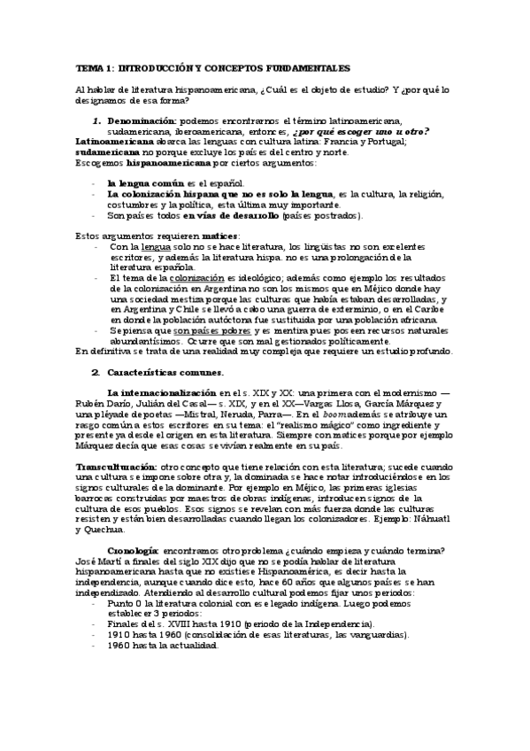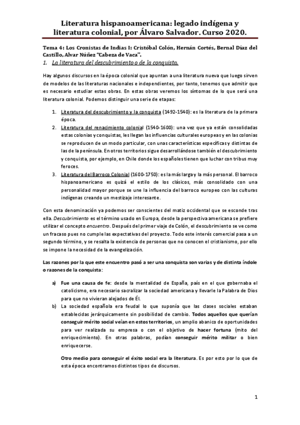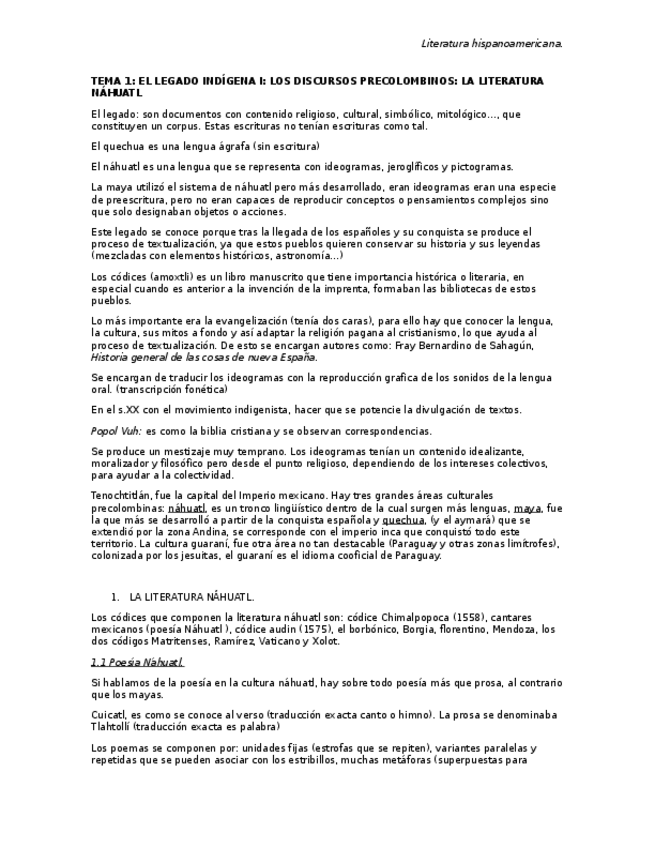 Tema 1 de literatura hispanoamericana, legado indígena y colonial