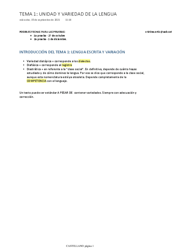 He publicado nuevos apuntes de 2º Llengua Catalana o Castellana per a Traductors i Intèrprets 2 o Idioma Castellà per a Traductors i Intèrprets 2: Cast. TEMA 1 - Lengua escrita y variación.pdf