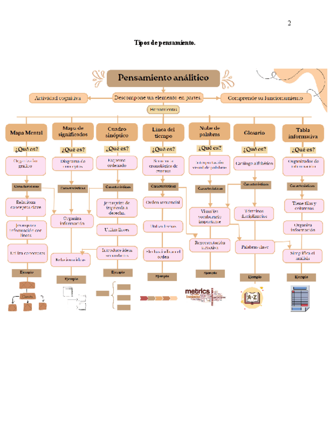 Mapa conceptual sobre el pensamiento análitico y herramientas que ayudan a desarollarlo con carácterísticas y ejemplos. Información referenciada en APA