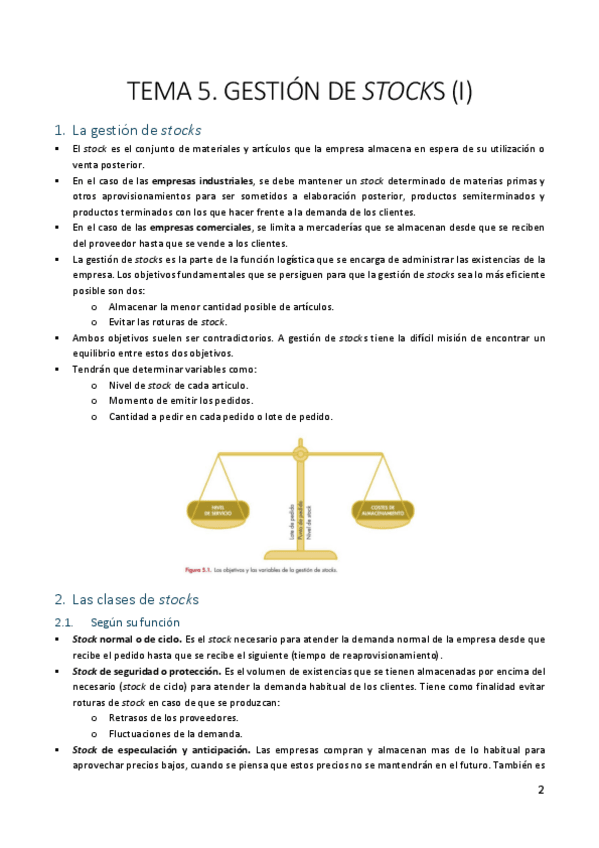 Resumen TEMA 5 "Los tipos de existencias y las variables de la gestión de stocks" del libro de Logística de aprovisionamiento. 2ª edición.