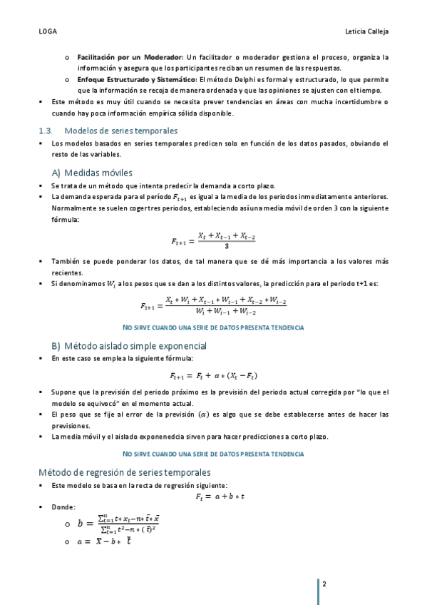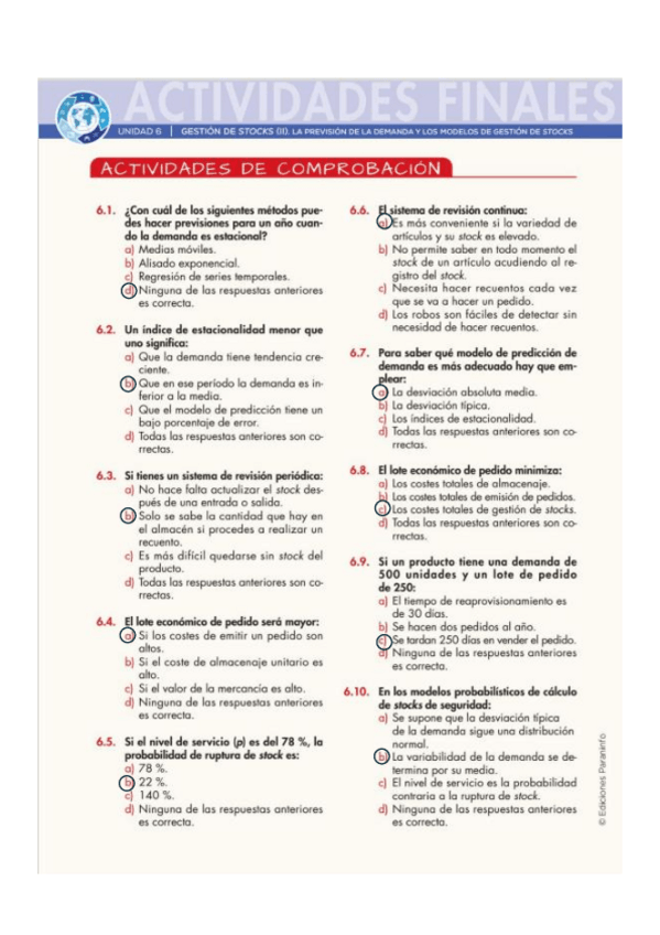 Resumen TEMA 6 "La previsión de la demanda y los modelos de gestión de stock" del libro de Logística de aprovisionamiento. 2 edición. ESTÁ EL PASO A PASO DE CADA TIPO DE EJERCICIO DEL TEMA