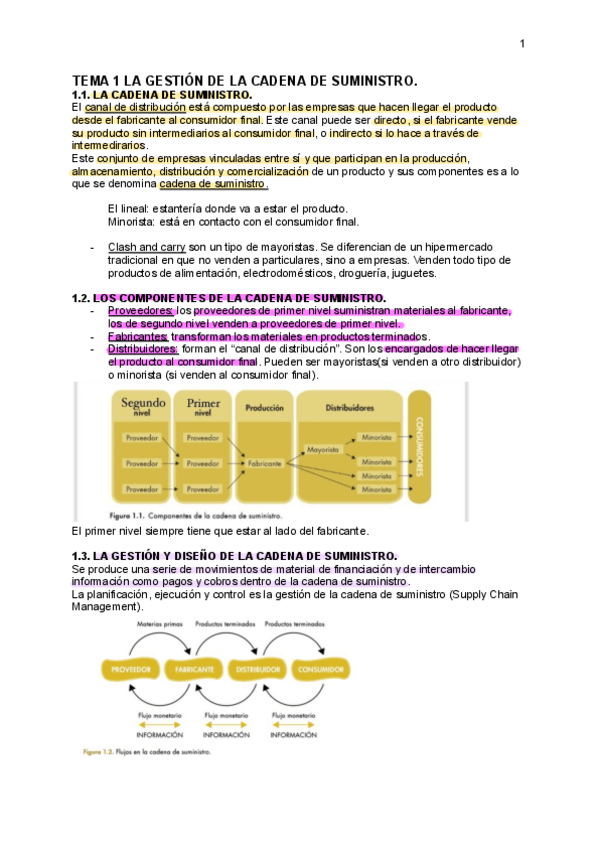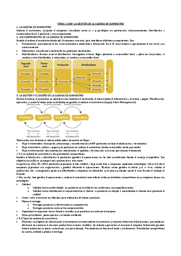 Resumen TEMA 1 "La gestión de la cadena de suministros" del libro de logística de aprovisionamiento. 2ª edición