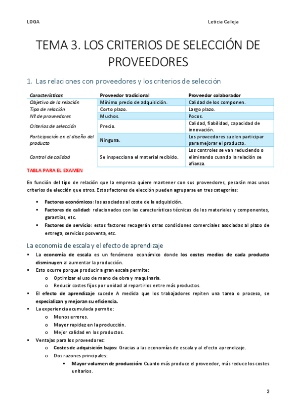 Resumen TEMA 3 "Los criterios de selección de proveedores" del libro de Logística de aprovisionamiento. 2ª edición