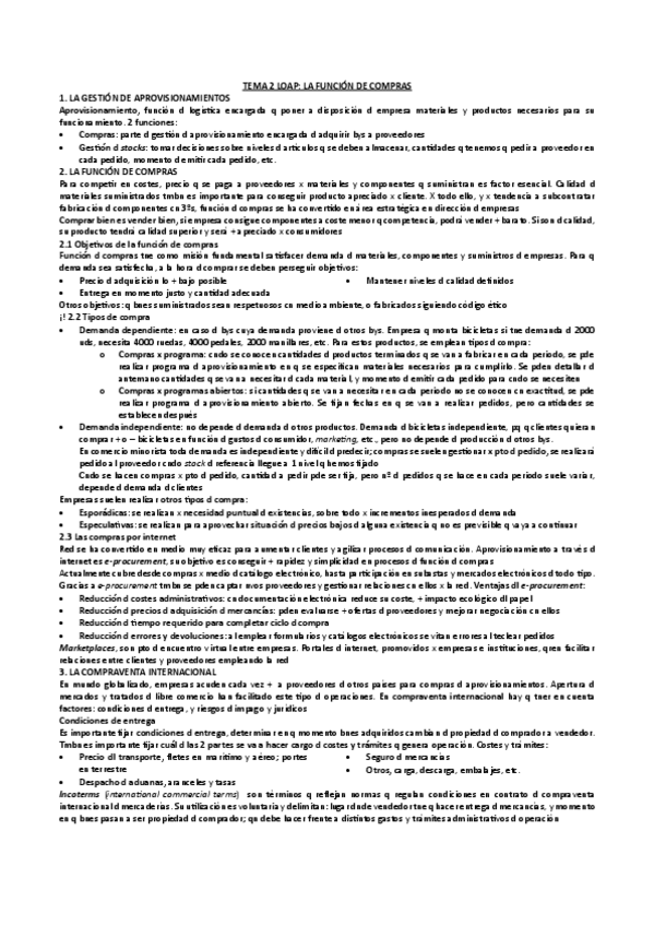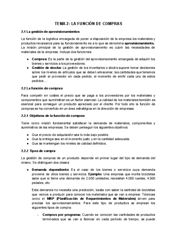 Resumen TEMA 2 "La función de compras" del libro de Logística de aprovisionamiento. 2ª edición.