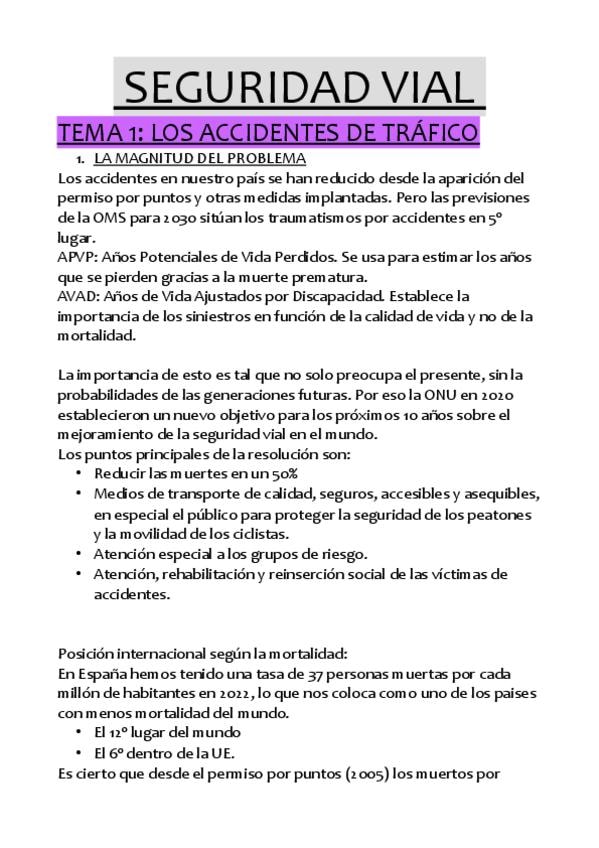 RESUMEN DEL TEMA 1 DEL BLOQUE DE SEGURIDAD VIAL