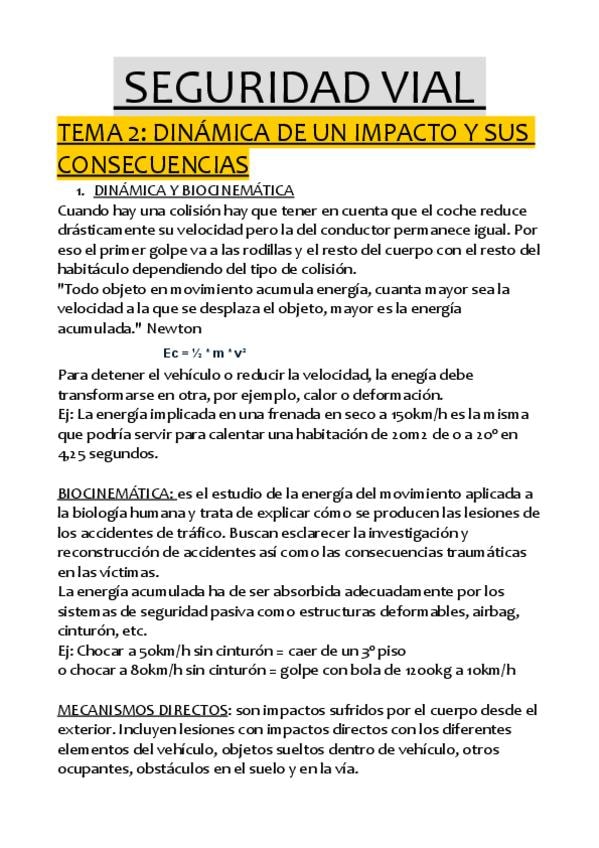 RESUMEN DEL TEMA 2 DE SEGURIDAD VIAL: DINÁMICA DE UN IMPACTO