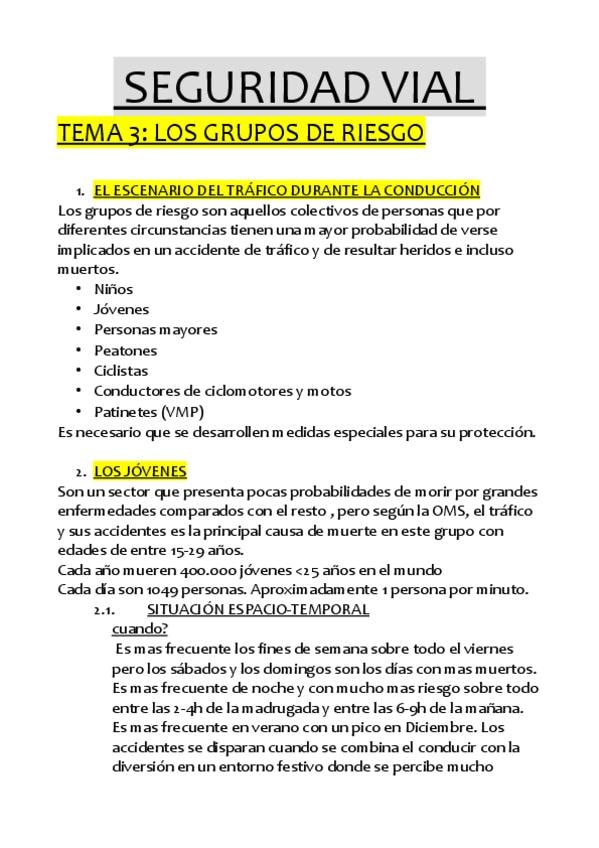 RESUMEN DEL TEMA 3 DEL BLOQUE DE SEGURIDAD VIAL, GRUPOS DE RIESGO