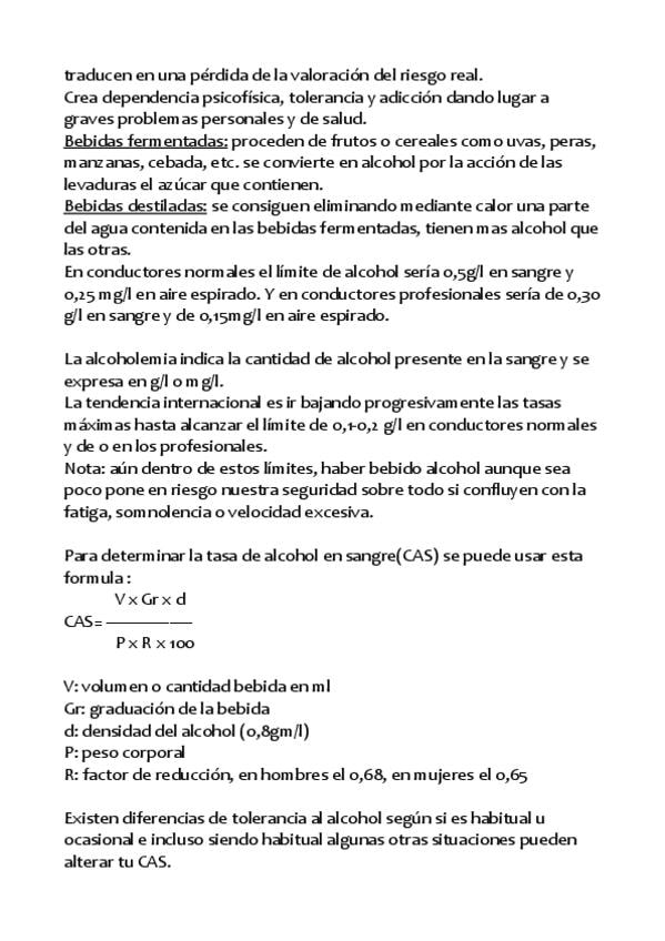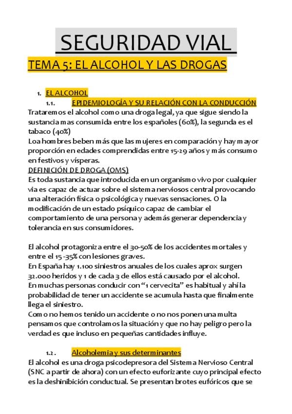 RESUMEN DEL TEMA 5 DEL BLOQUE DE SEGURIDAD VIAL, EL ALCOHOL Y LAS DROGAS