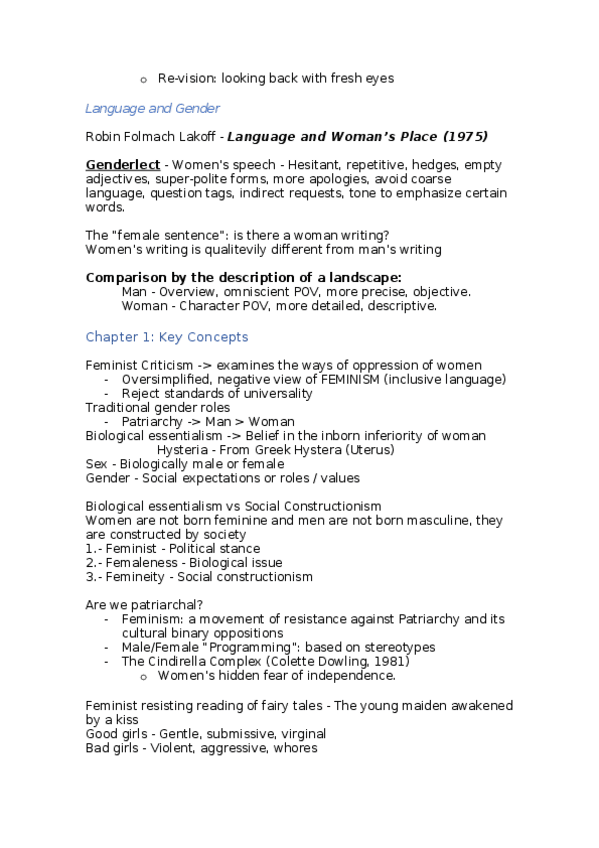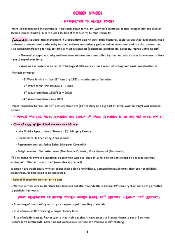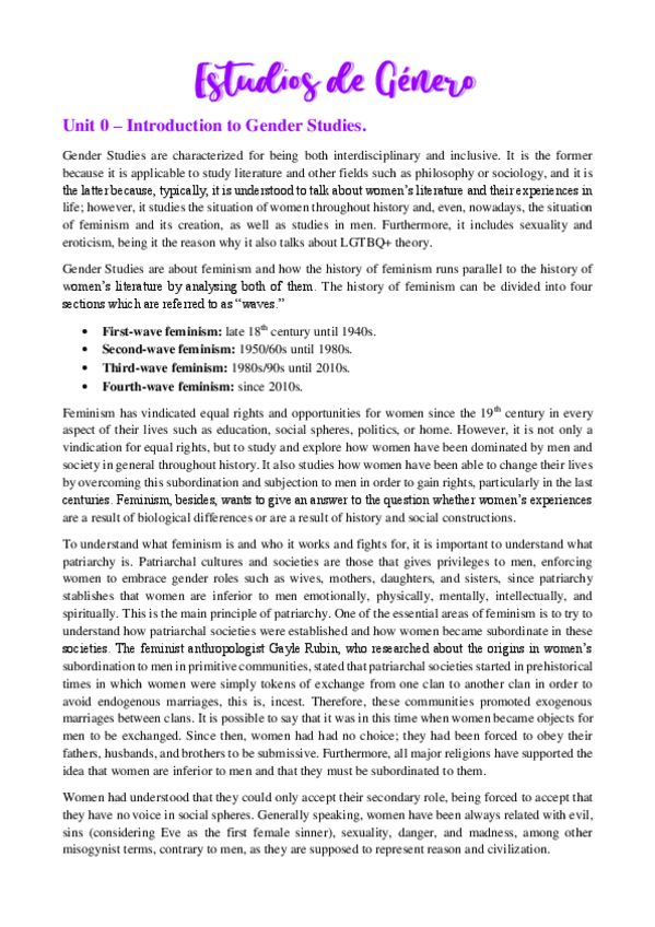 Apuntes de Estudios de Género y su Expresión Literaria en lengua inglesa