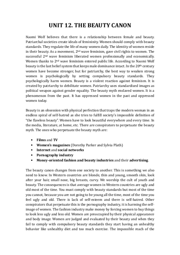 He publicado nuevos apuntes de 3º Los Estudios de Genero y su Expresion Literaria en Lengua Inglesa: Unit-12.-The-bauty-canon.pdf