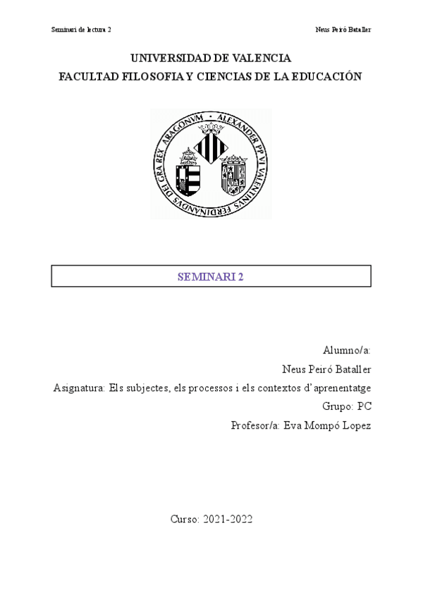 He publicado nuevos trabajos de 2º Los Sujetos, los Procesos y los Contextos del Aprendizaje: Seminaris de lectura