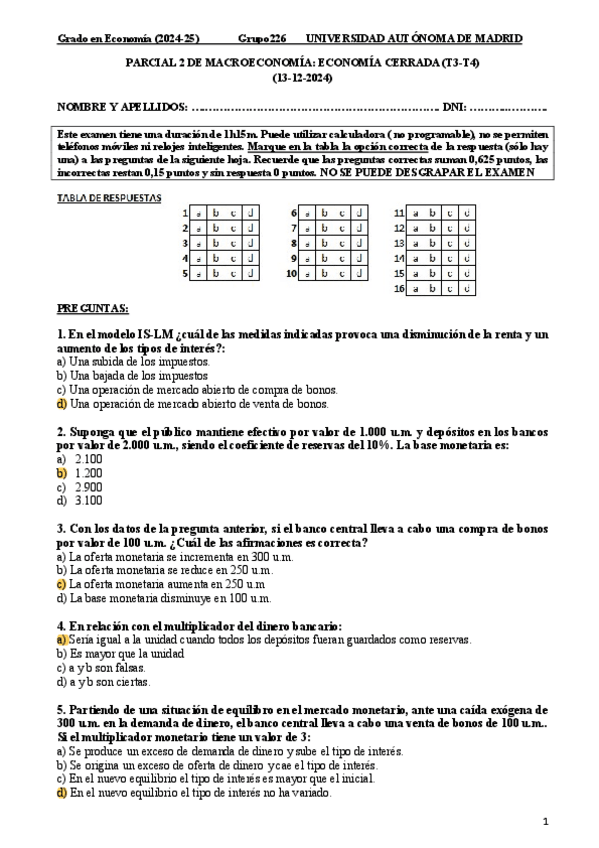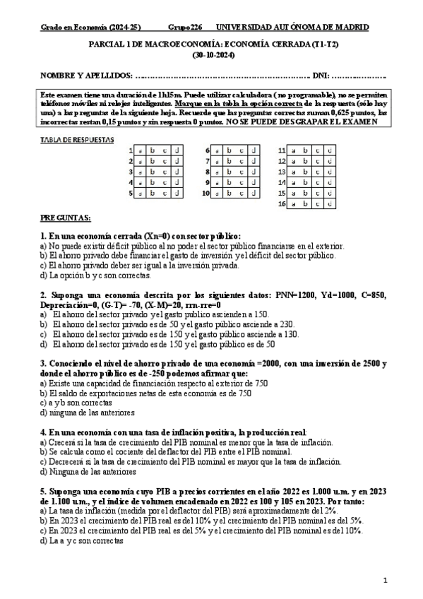 He publicado nuevos examenes de 2º Macroeconomía: Economía Cerrada: PRIMER.PARCIAL.pdf