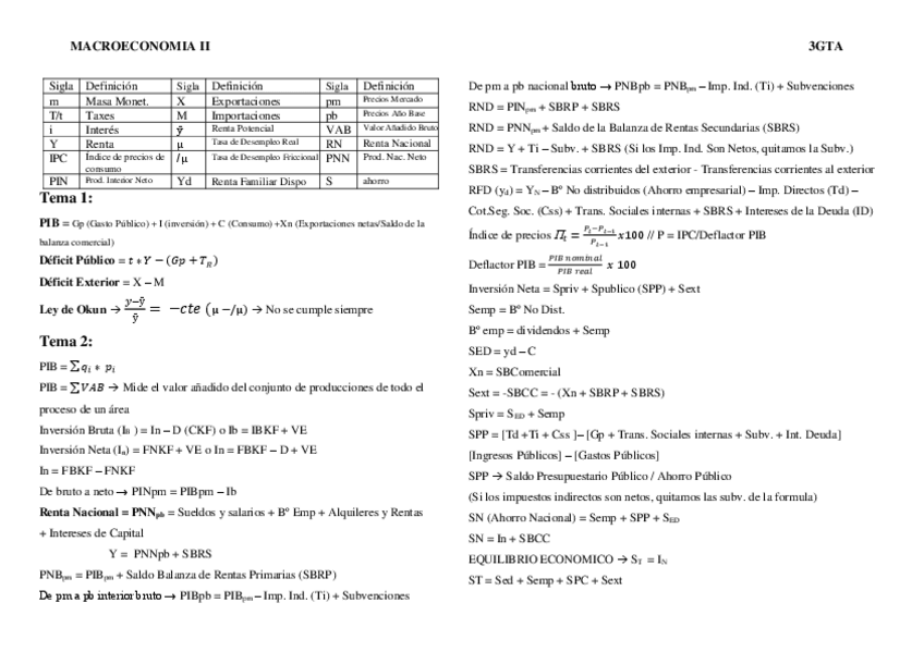 Macroeconomía 1. Resumen tema 1 y 2