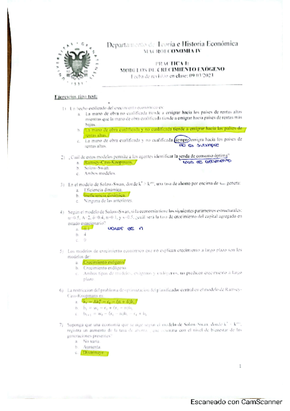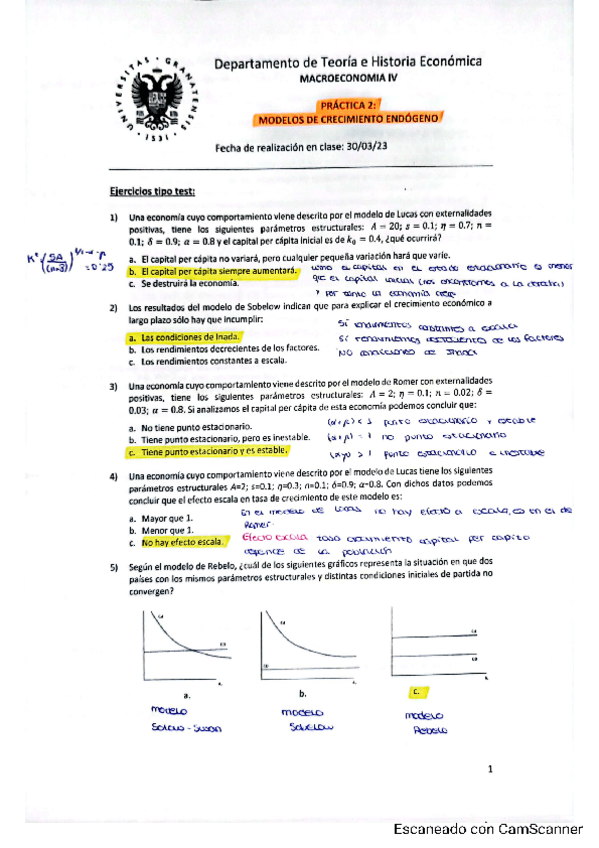 Modelos de Crecimiento Endógeno resueltos examen