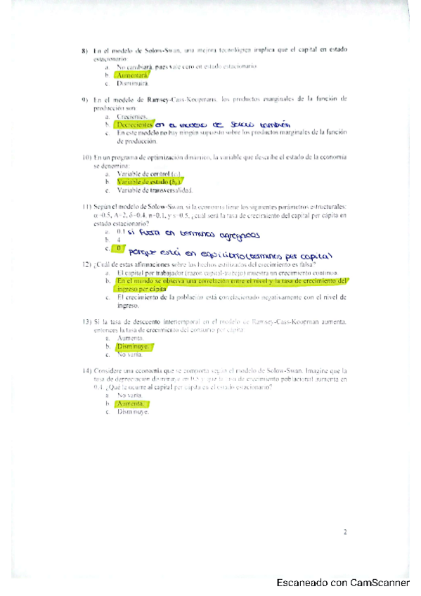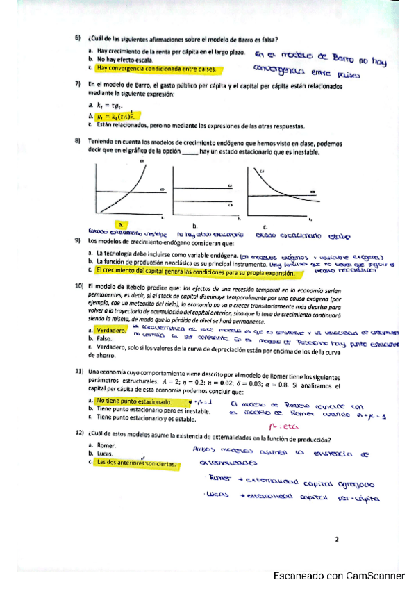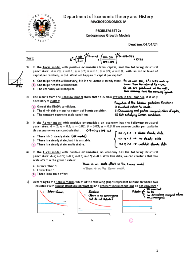 Modelos de Crecimiento Endógeno resueltos examen