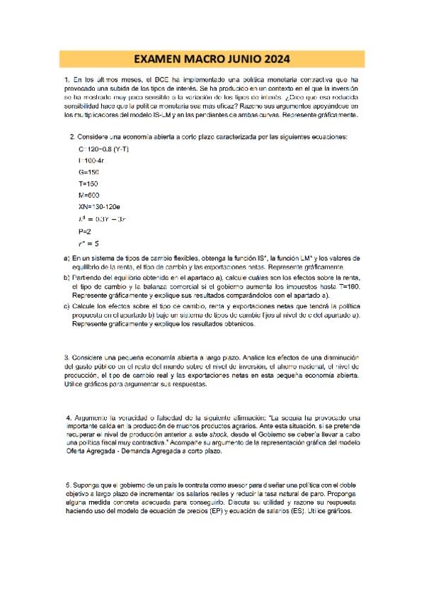 Exámenes de Macroeconomía Junio del 2023 hasta el 2025