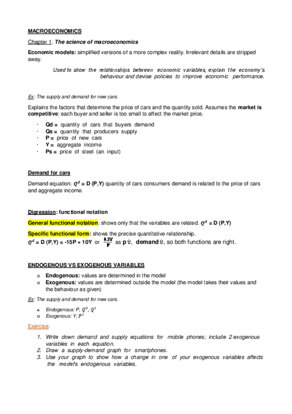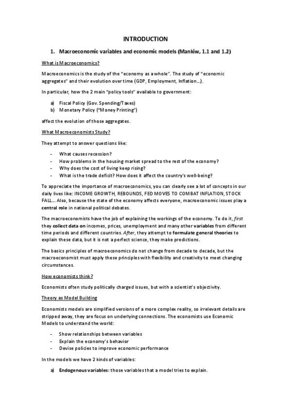 NOTES-MACROECONOMICS I SUMMARIES