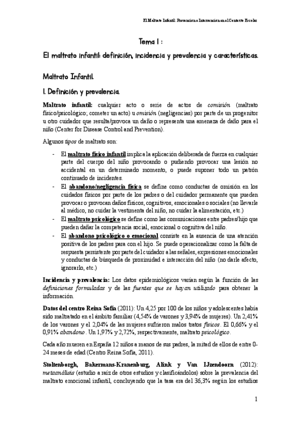 He publicado nuevos apuntes de 1º Maltrato Infantil: Prevención e Intervención en el Contexto Escolar: TEMA-1-EL-MALTRATO-INFANTIL.pdf