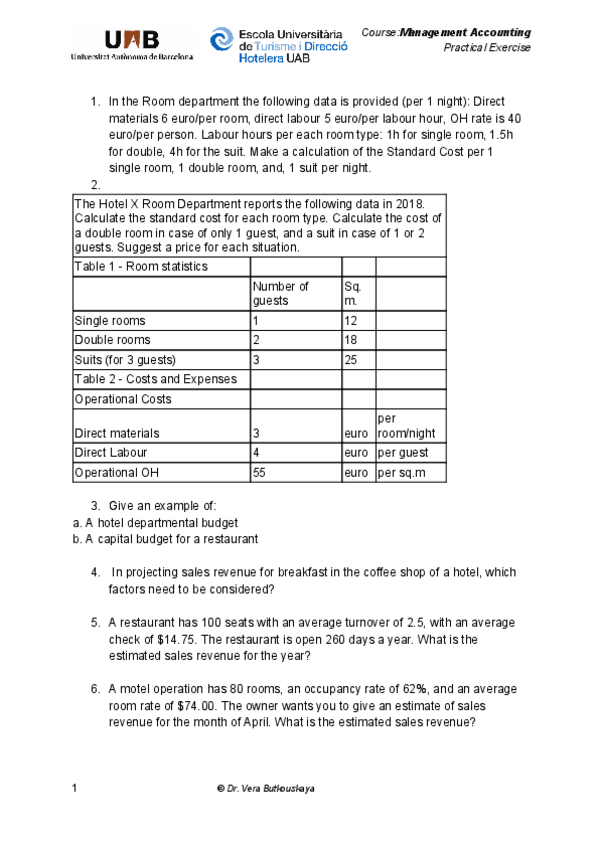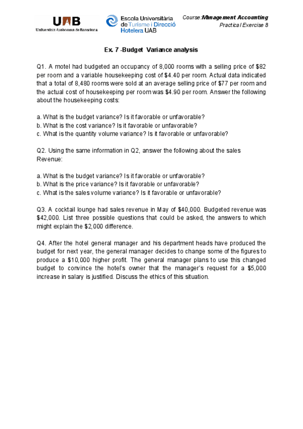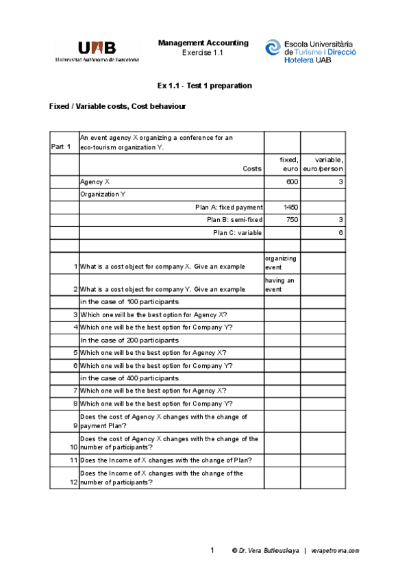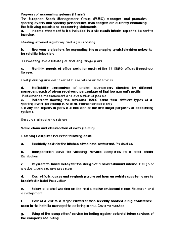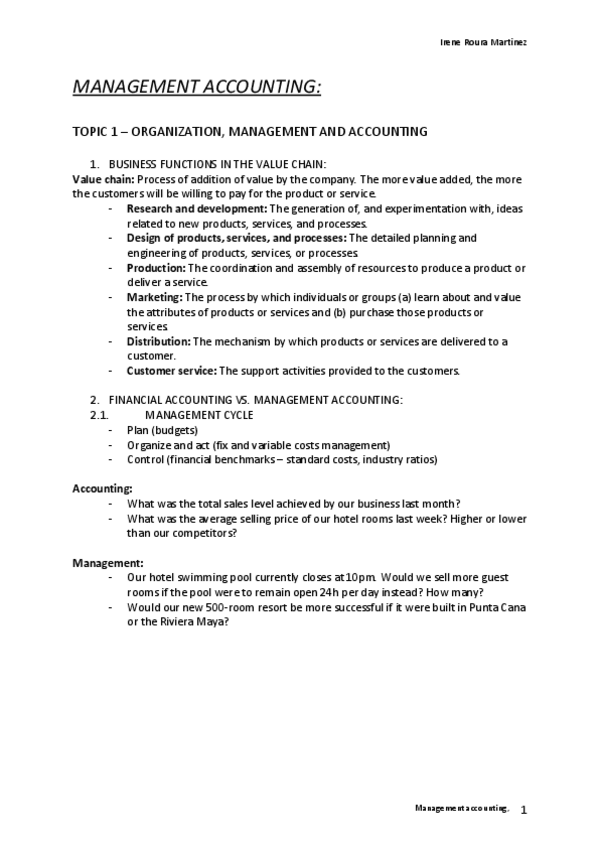 He publicado nuevos apuntes de 3º Management Accounting: exercices 1 and 2