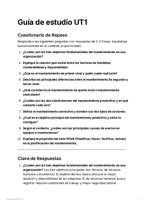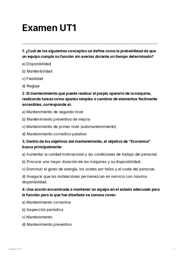 UT1. Tipología y organización del mantenimiento