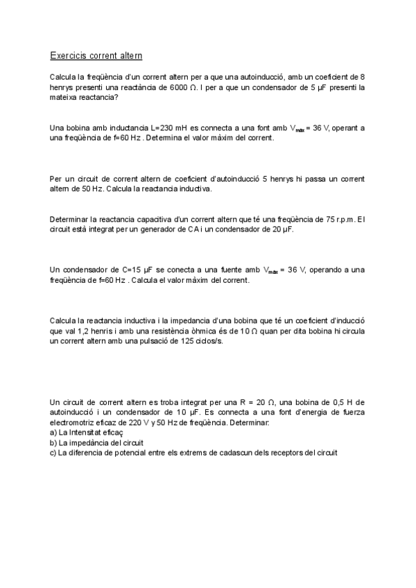He publicado nuevos apuntes de Mantenimiento electromecánico en industrias de proceso: Exercicis-corrent-altern.pdf