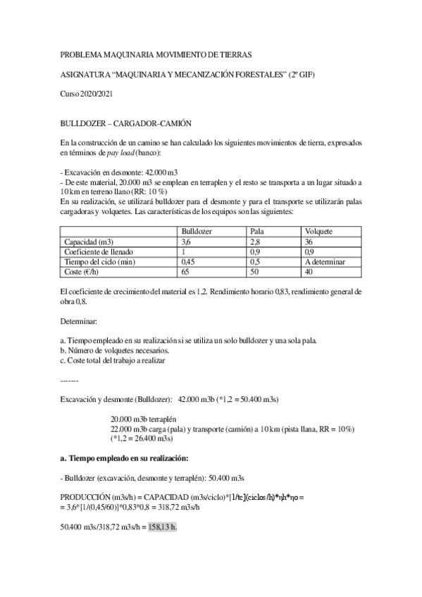 He publicado nuevos apuntes de 2º Maquinaria y Mecanización forestales: Ejercicios de clase RESUELTOS por Gregorio