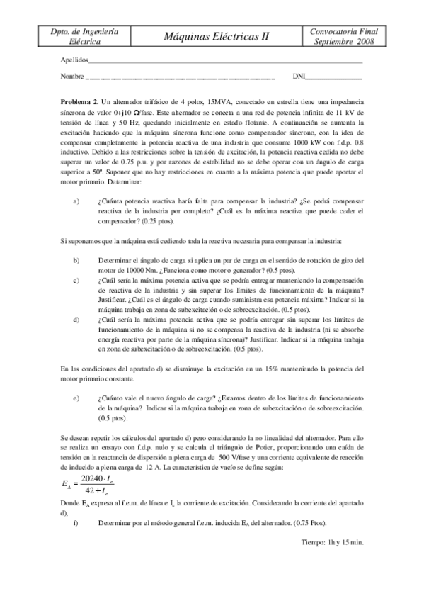 He publicado nuevos examenes de 3º Máquinas Eléctricas 2: RESUELTO MAQUINA SINCRONA