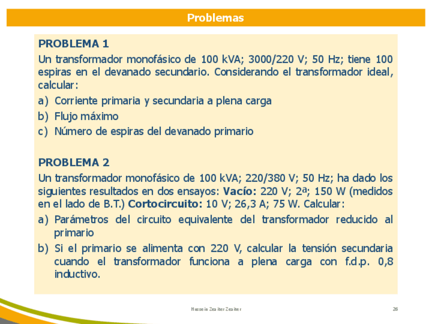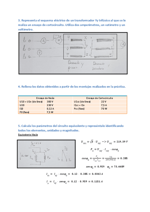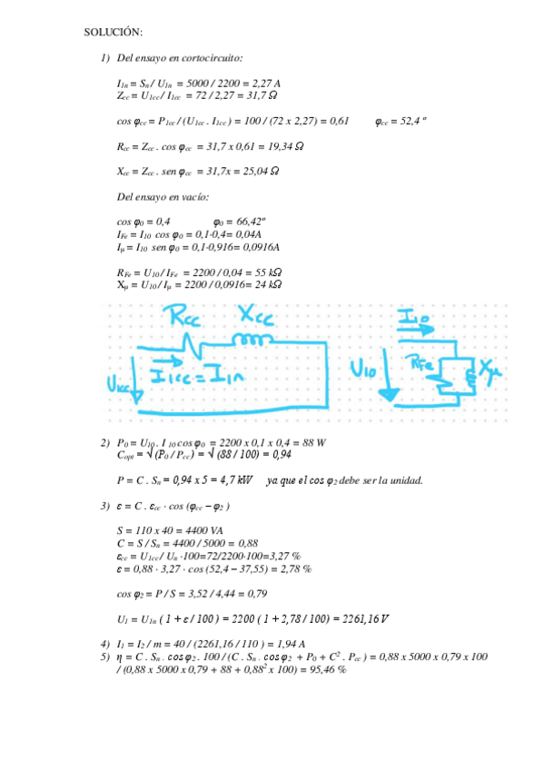 Ejercicios + TEST (TRANSFORMADORES)