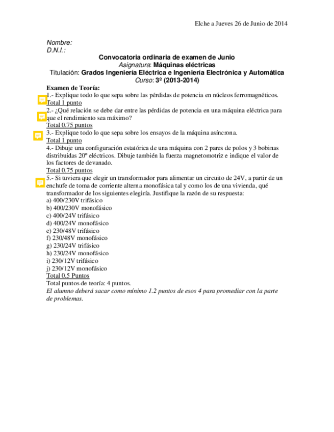 He publicado nuevos examenes de 3º Máquinas Eléctricas: Examen-teoria-Junio-de-2014.pdf