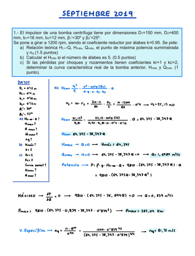 He publicado nuevos examenes de 3º Máquinas fluidomecánicas: EXAMEN-Septiembre-de-2019-RESUELTO.pdf