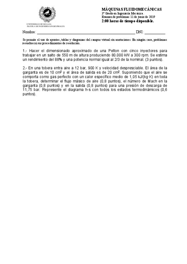 He publicado nuevos examenes de 3º Máquinas fluidomecánicas: EXAMEN-Junio-de-2019-RESUELTO.pdf