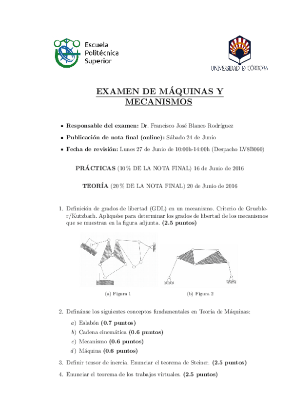 He publicado nuevos examenes de 2º Máquinas y Mecanismos: Examenes-Planteamiento.pdf