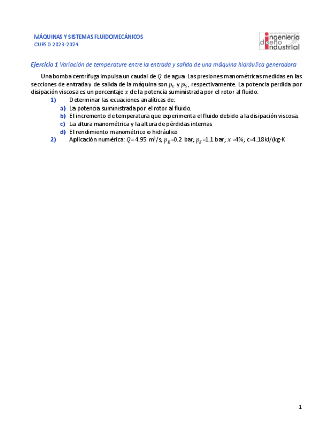 He publicado nuevos ejercicios de 3º Máquinas y Sistemas Fluidomecánicos: Ejercicios-tema-2-MSF.pdf