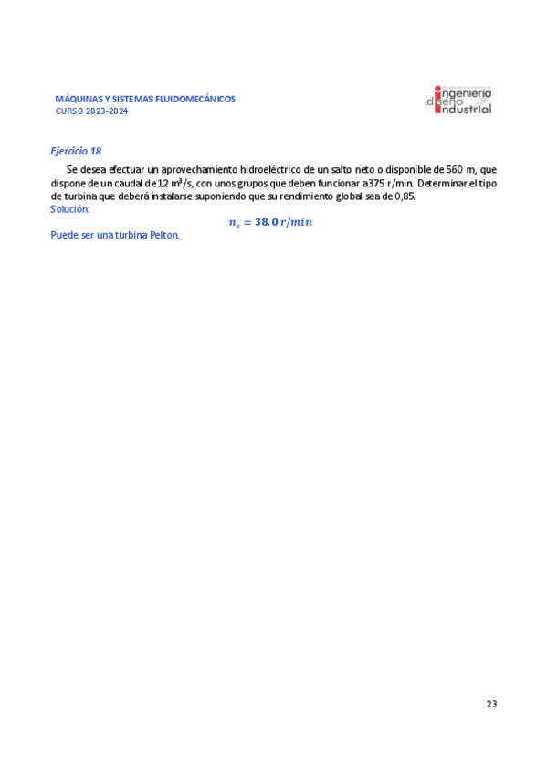 He publicado nuevos ejercicios de 3º Máquinas y Sistemas Fluidomecánicos: Ejercicios-Resueltos-T.-pelton-T3.3.pdf